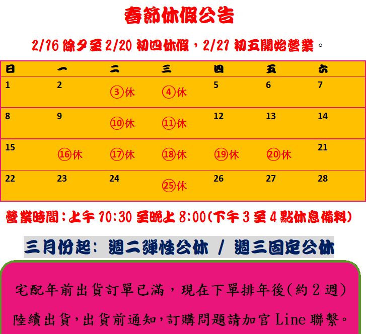 我們也會電話聯繫或Line聯絡。(請加官方. 並留下訂購大名)